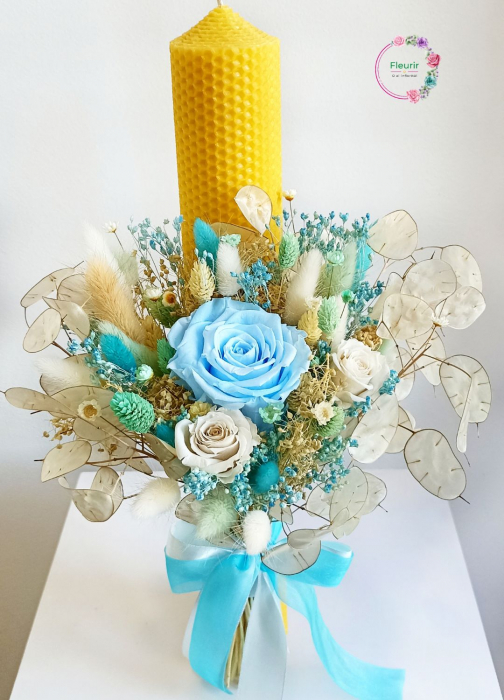 Lumânările de cununie cu flori uscate și criogenate sunt o alegere deosebită, ce îmbină frumusețea naturală cu durabilitatea. Ornate cu flori stabilizate, precum trandafiri criogenati, lavandă, eucalipt sau alte elemente uscate, aceste lumânări sunt perfecte pentru ceremonii cu tematică rustică, boemă sau vintage. Fiecare aranjament este realizat cu migală, oferindu-ți un decor unic și sofisticat pentru ziua cununiei.